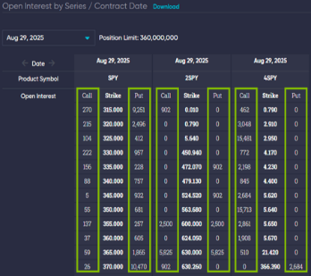 Open interest serves as a valuable indicator of market depth and participation; it represents the collective number of open option contracts still active. Examining the day-to-day rise and fall of open interest can produce clues and insights into trading activity.